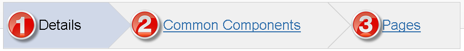 Populate the form fields on each panel (Details, Common Components, and Pages) as necessary.