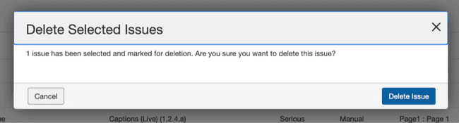 - On the confirmation prompt popup window, click the Delete Issues button (or Cancel if unsure).