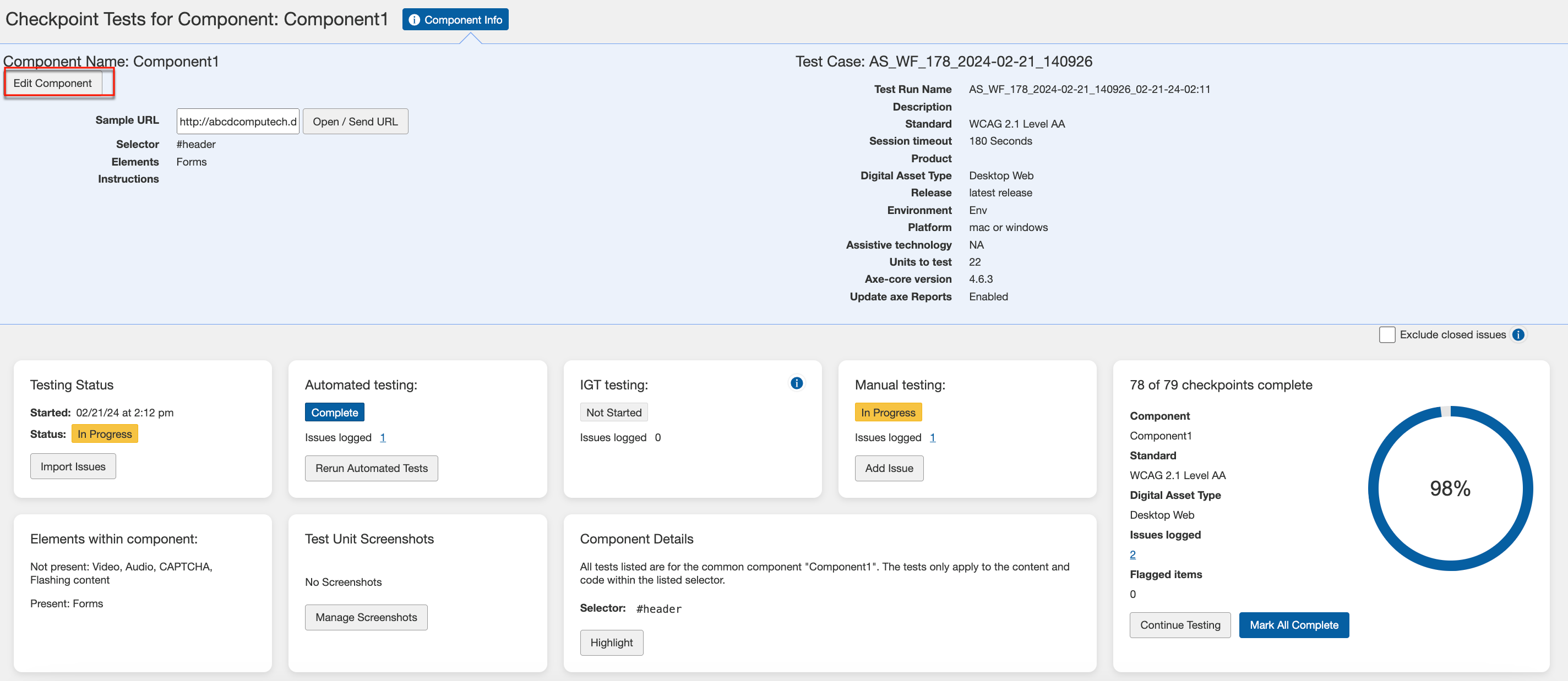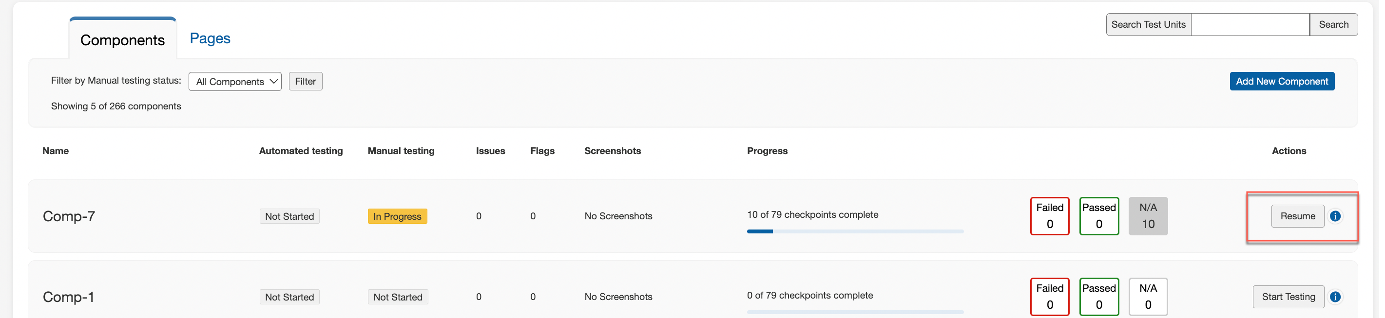 The scope of a test can change while you are in the middle of a test and the pages or components are no longer relevant. Test units (pages or components) can be added or removed from a Test Run.