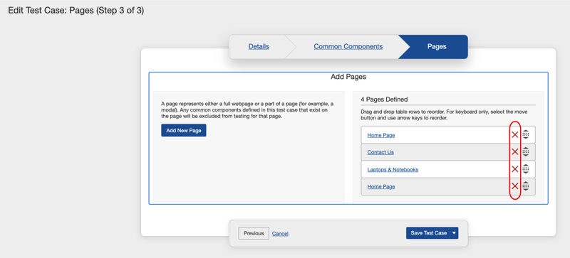 Deleting a Page from a Test Case