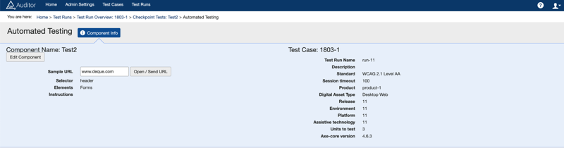 Navigate to the Checkpoint Test Page for the selected Component. Ensure that this is for an In-Progress Test Run.