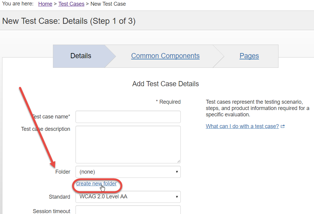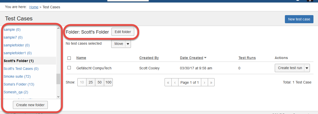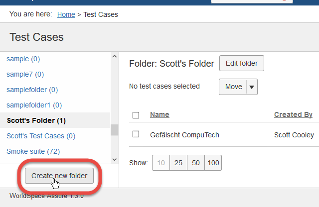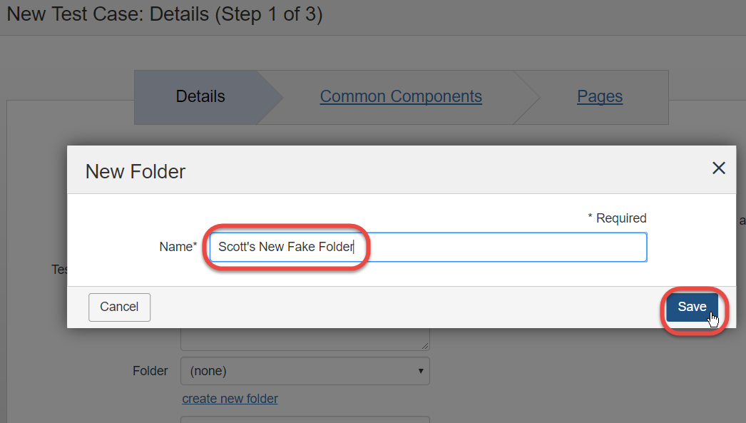 You can also create a new folder when it occurs to you after already initiating the process of creating a new test case when an appropriately-named folder does not yet exist.
