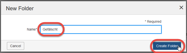 On the New Folder popup window, enter a name for the new folder in the Name field.