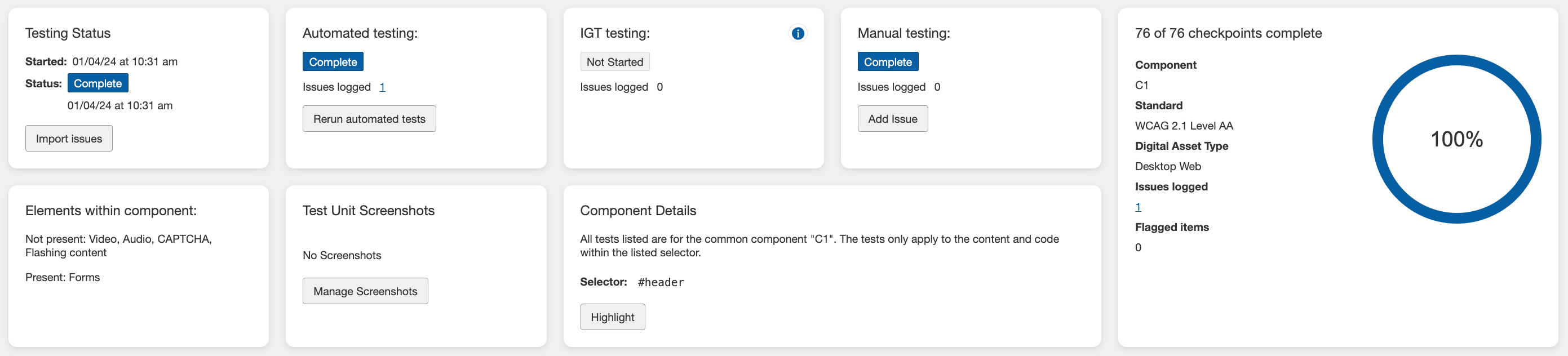 Caution: For all checkpoint tests that do not have assigned results or issues added, the result to be assigned will be 'Pass'. For those without a result that do have issues added, the result to be assigned will be 'Fail'.