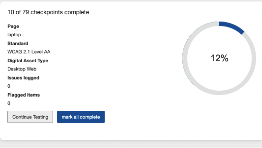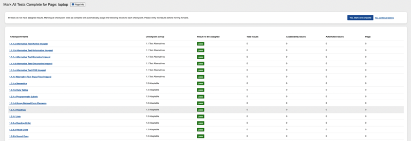 - In the top, right corner of the Checkpoint Tests for Page:<Page Name> screen, click the mark all complete button.