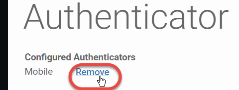 When you want to remove a configured authenticator, click the Remove link on the Authenticator screen.