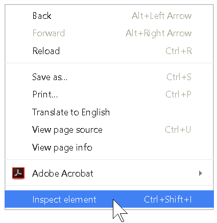 - With an element selected*: Right-click an element on a web page and select Inspect Element [(Q)]{.kbd}.