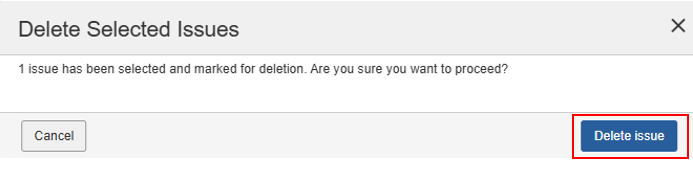 - On the confirmation prompt popup window, click the Delete Issues button (or Cancel if unsure).