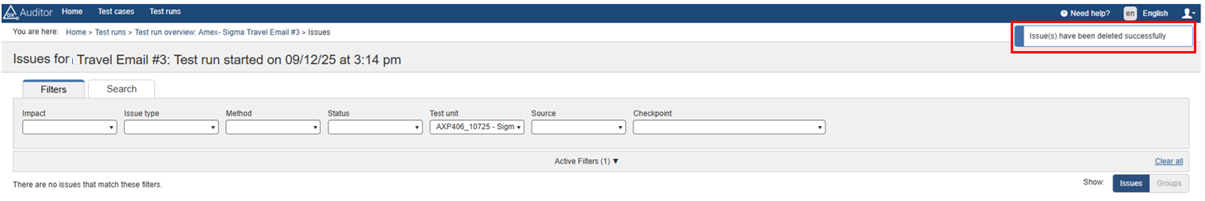 The issues are not only removed from the Issues for screen, but also from the individual checkpoint test screen with which they had been associated.