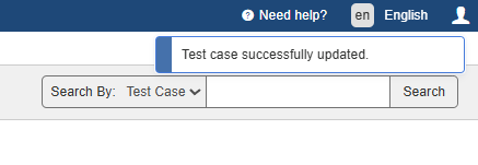 The Edit Test Case screen closes, and the Test Cases screen displays a system response message confirming your success in updating the test case: 'Test case successfully updated' at the top, right corner of the screen.