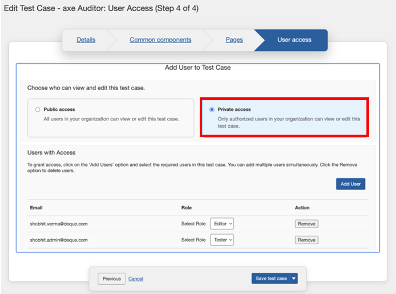 - Editor: Can add/remove users, assign test cases, edit or duplicate cases, and manage test runs.