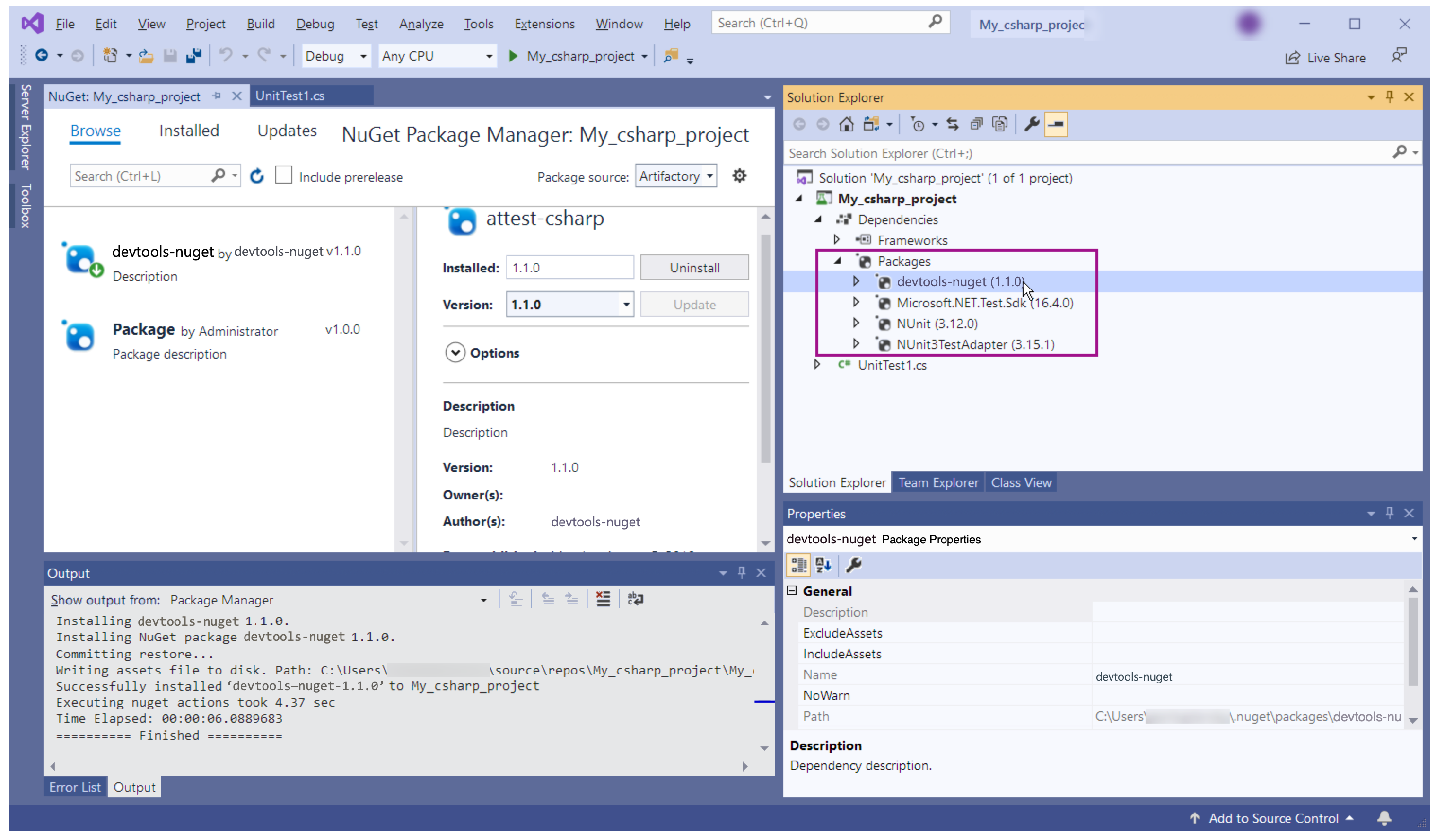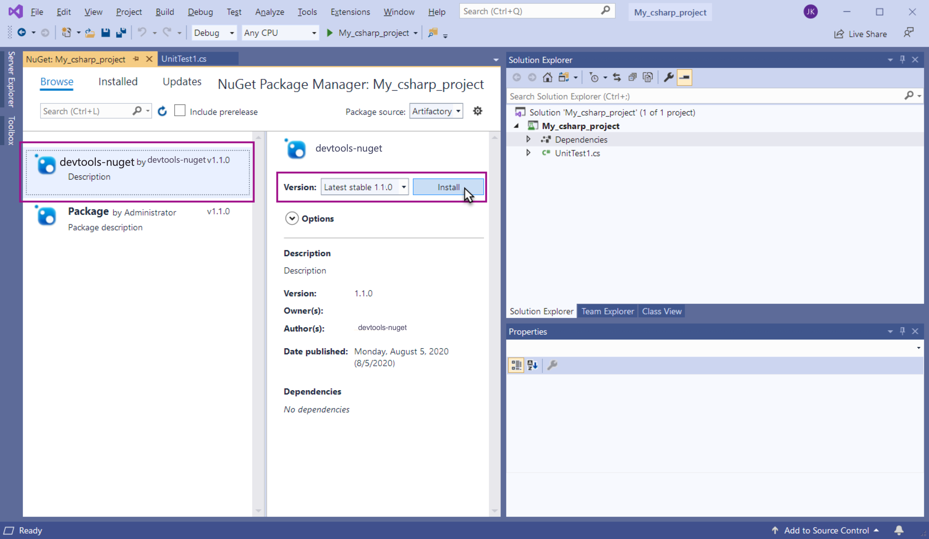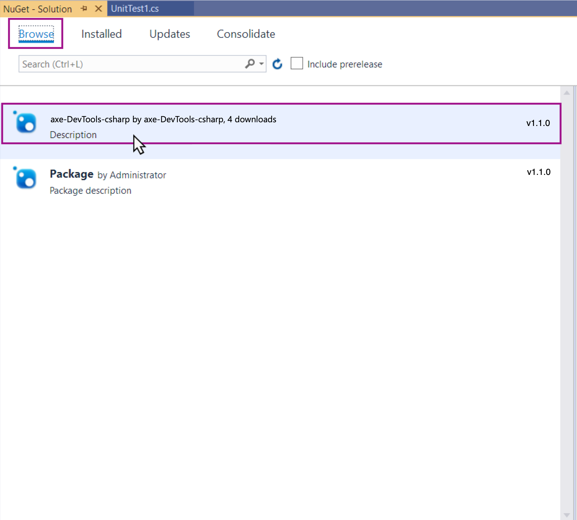 Installing and axe DevTools in Visual Studio requires you to extend NuGet to include Deque's Agora artifact repository.