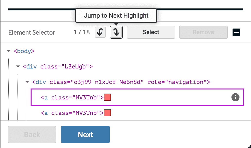 - Add ability to jump to next and previous highlighted element in the "Element Selector". This feature helps screen reader users understand what is being highlighted on the page