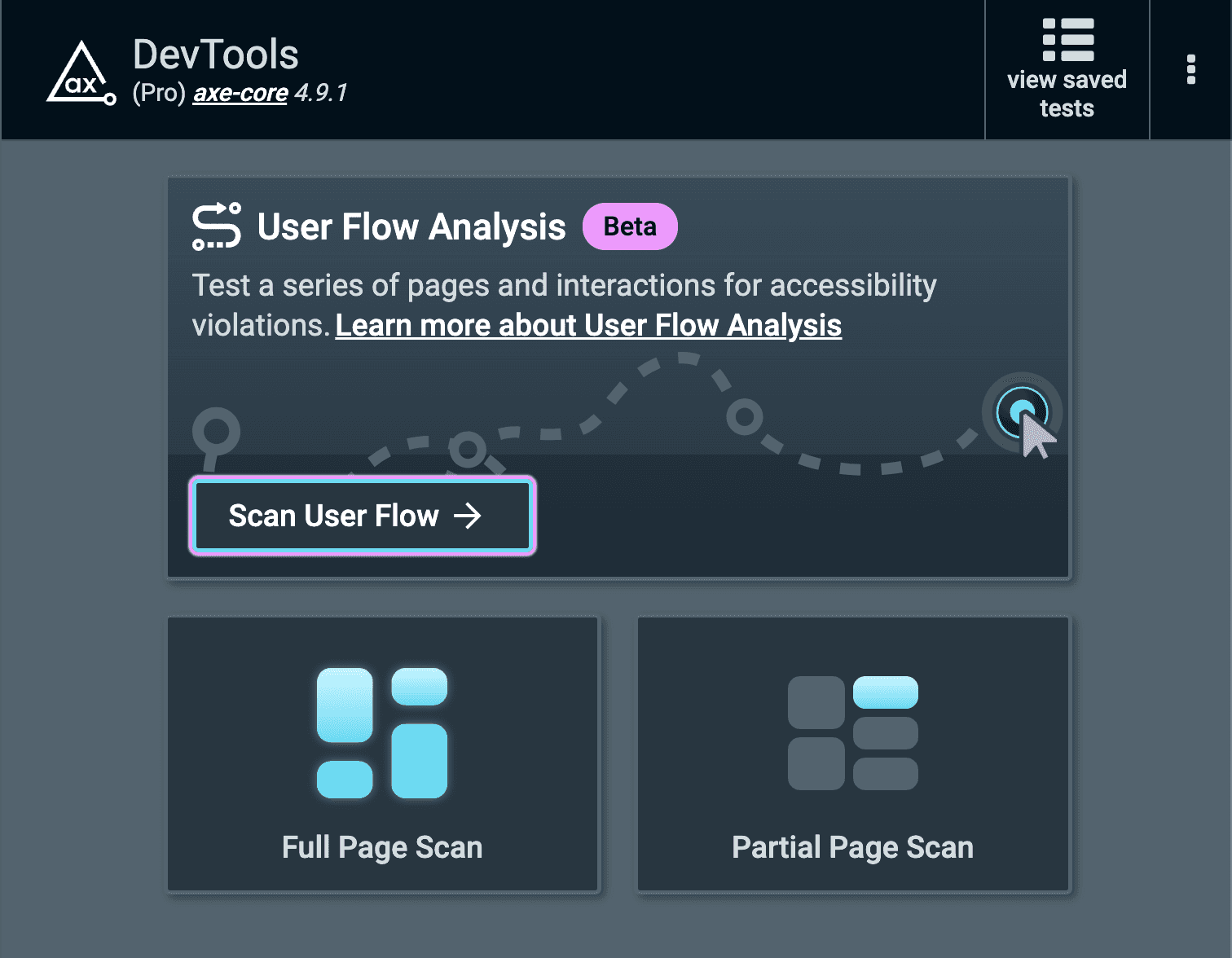 - From the axe DevTools Extension start screen, click "Scan User Flow"