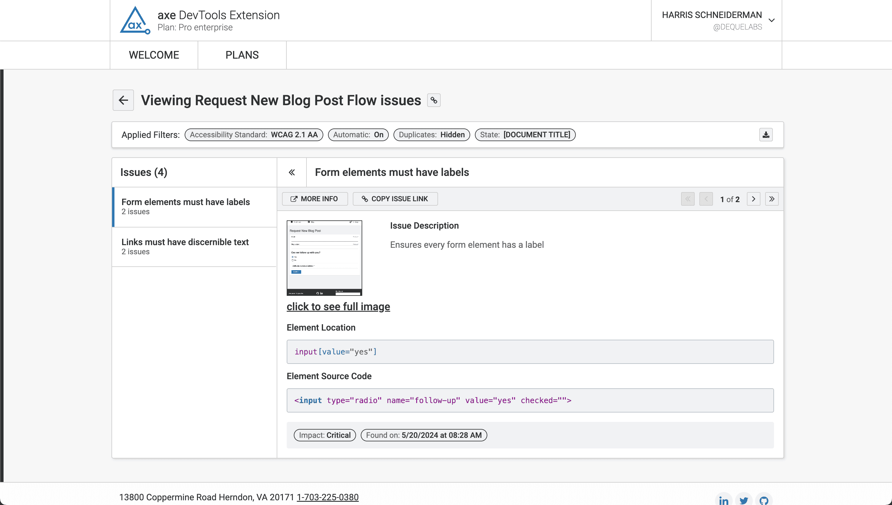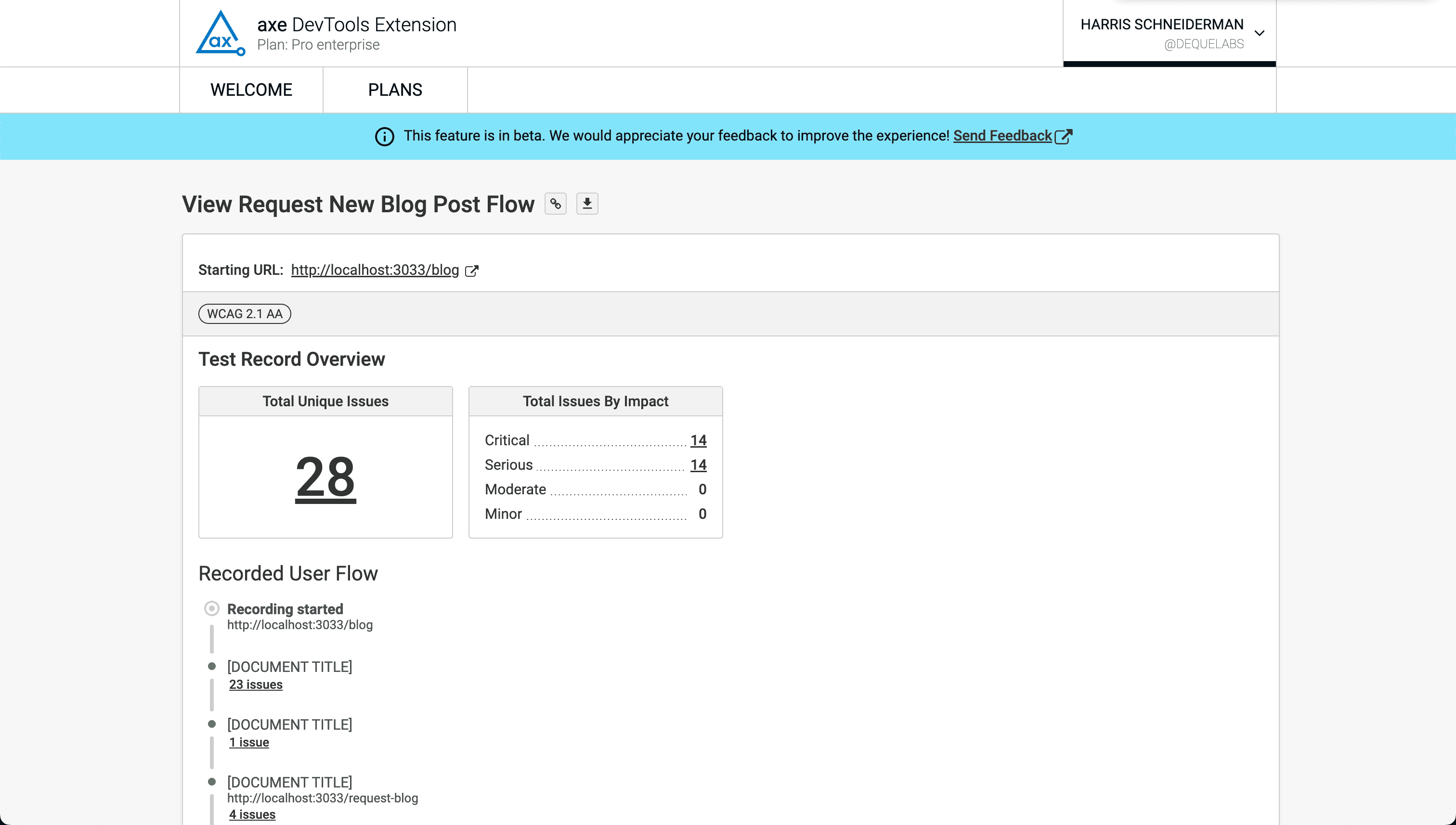 - Your issues will then be deduplicated so you can focus only on the unique issues found during the user flow analysis