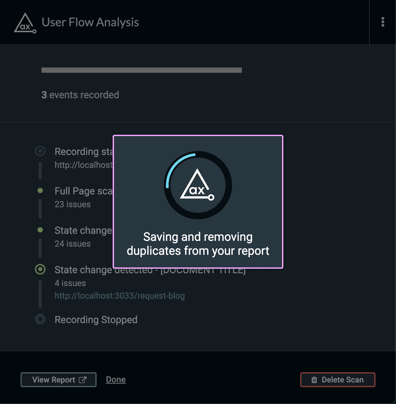 - Click "View Report" to review the unique issues found in each state of the recorded user flow