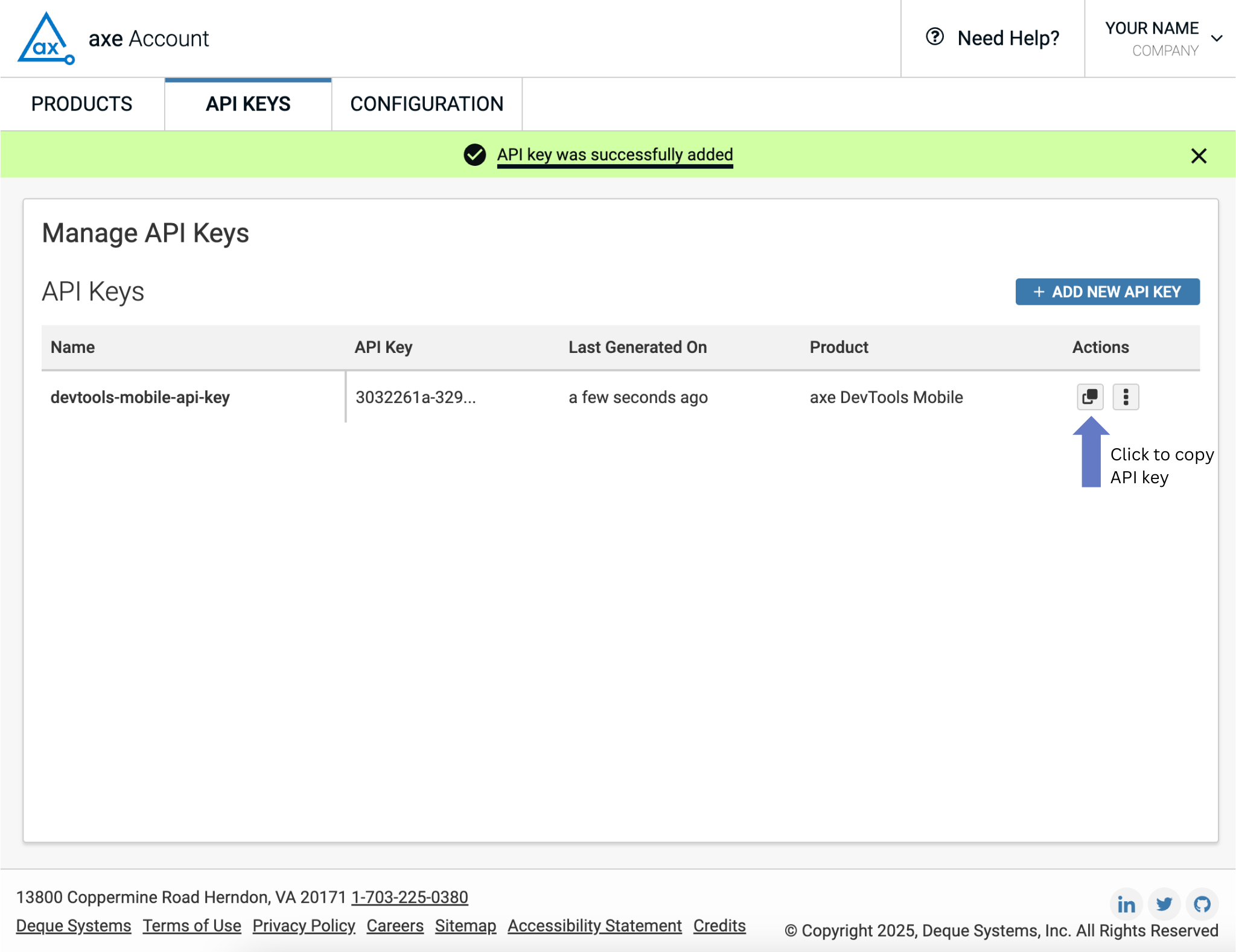 You can now use your API key to access axe DevTools Mobile.
