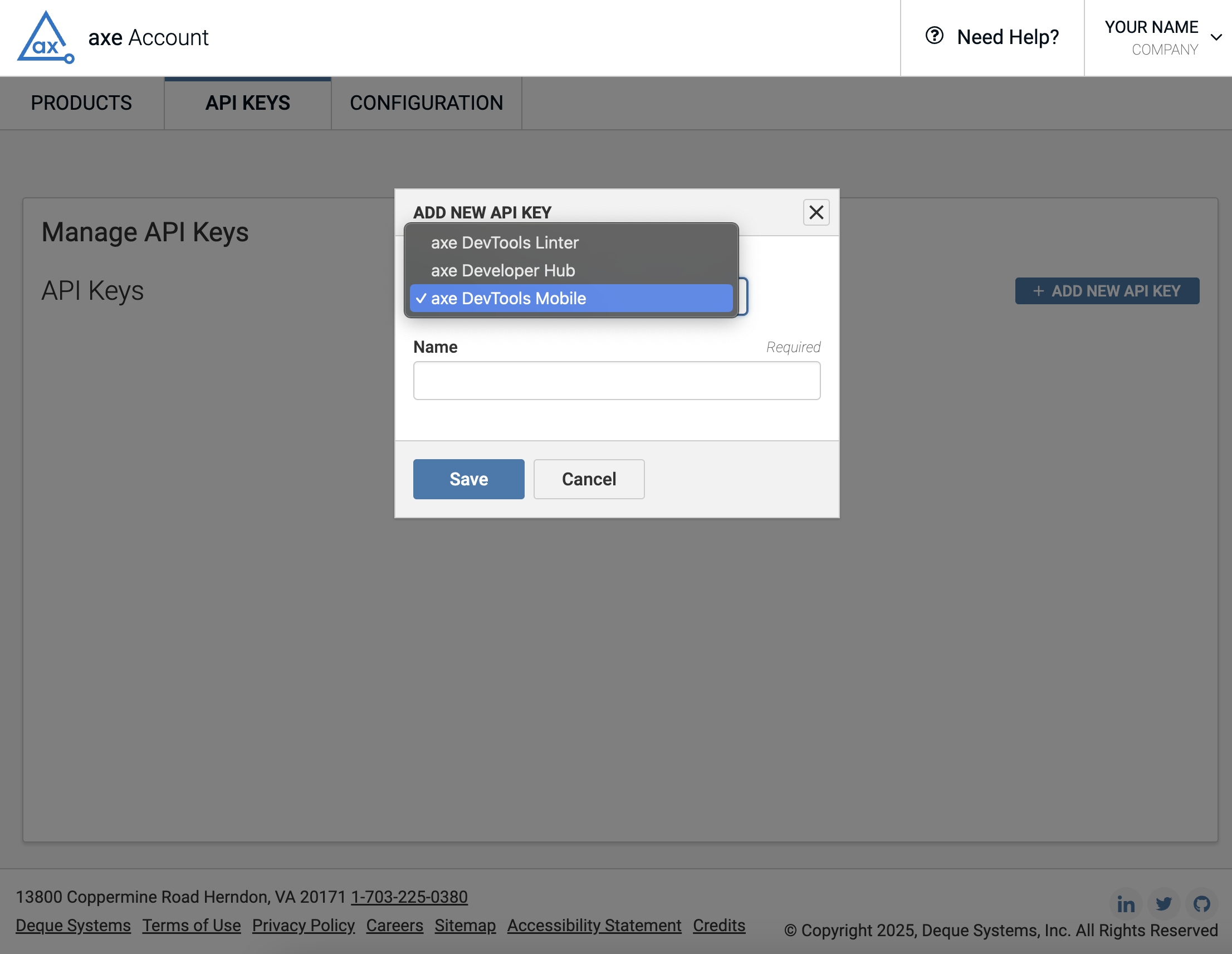 Generate an axe DevTools Mobile API Key
