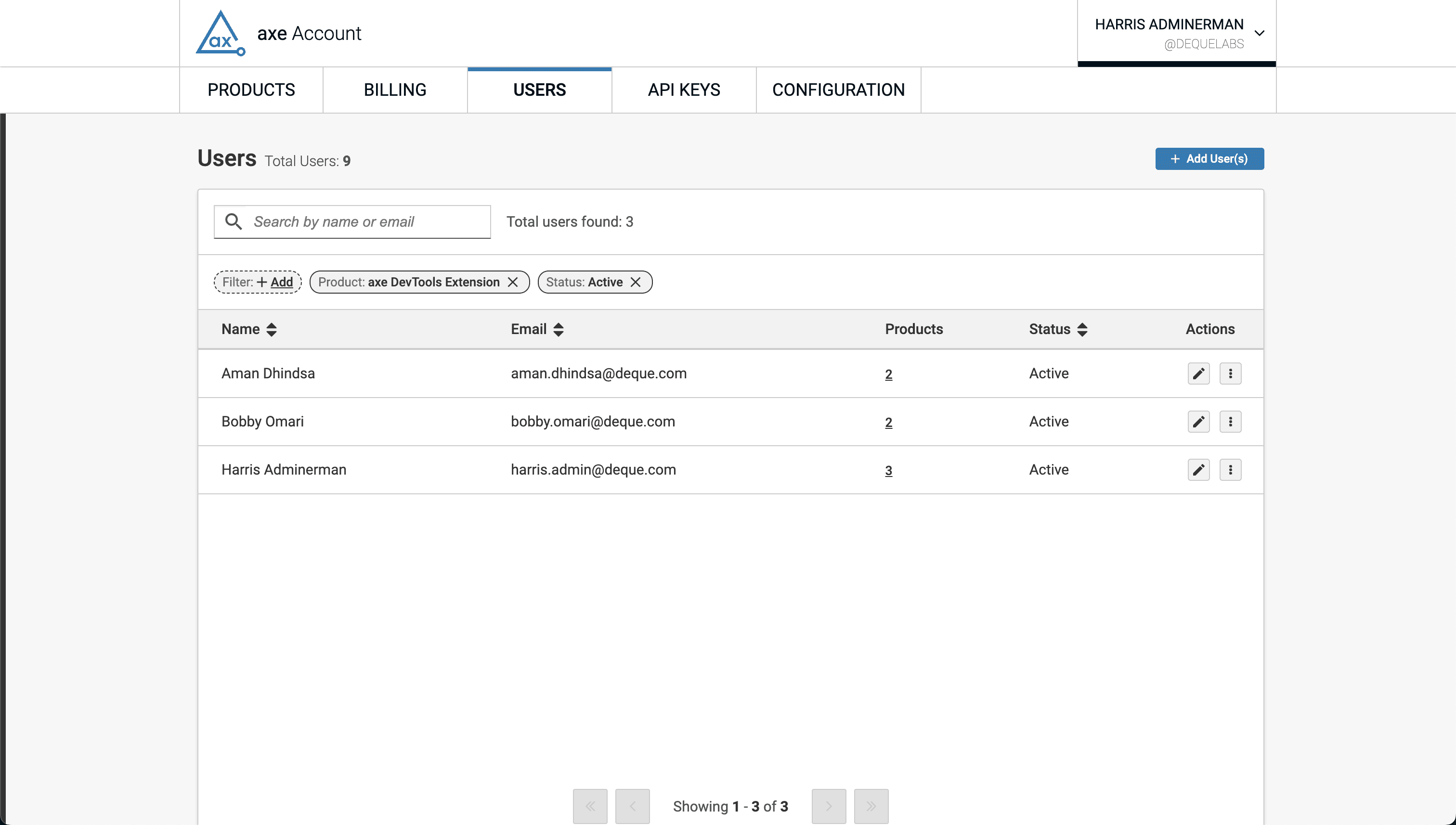 - Adding a user to axe DevTools for Web will give them access to axe DevTools (Pro), axe DevTools APIs and the CLI