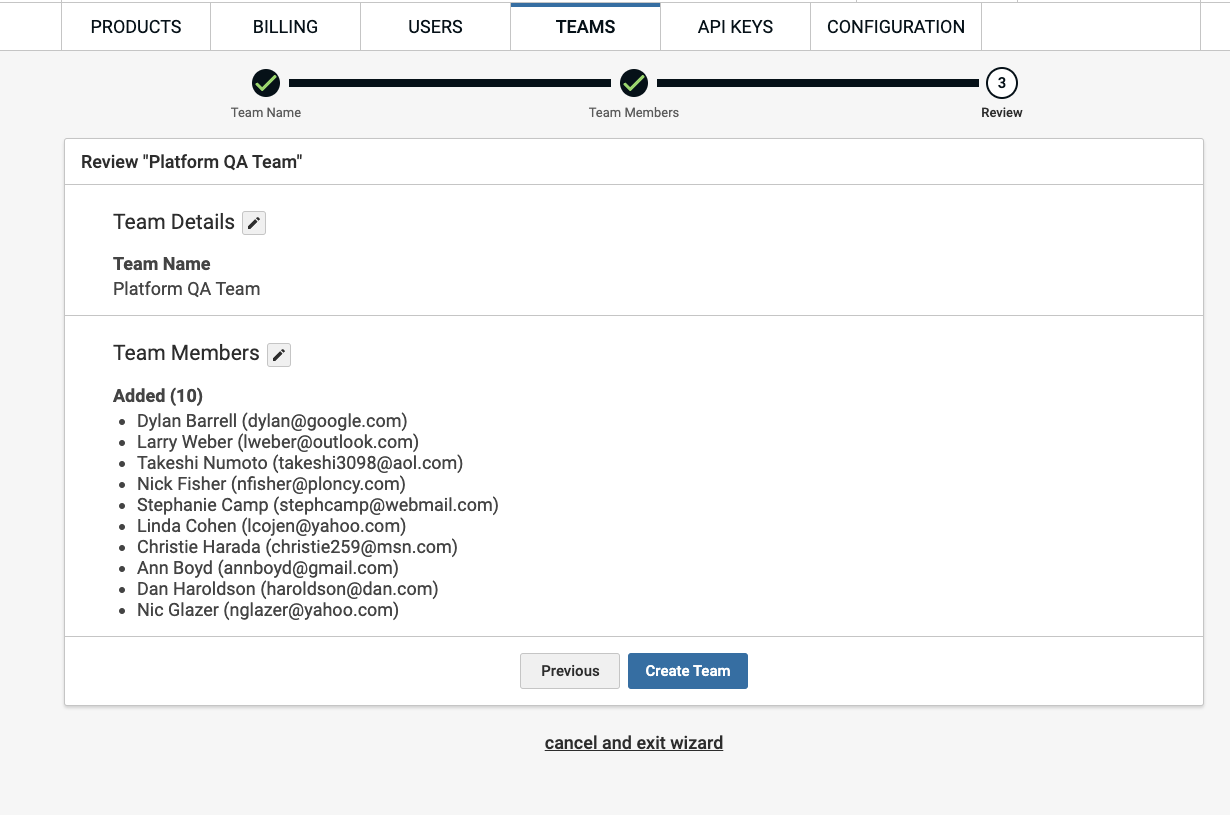 - Newly created team will be listed in the teams table (see Viewing Teams above)