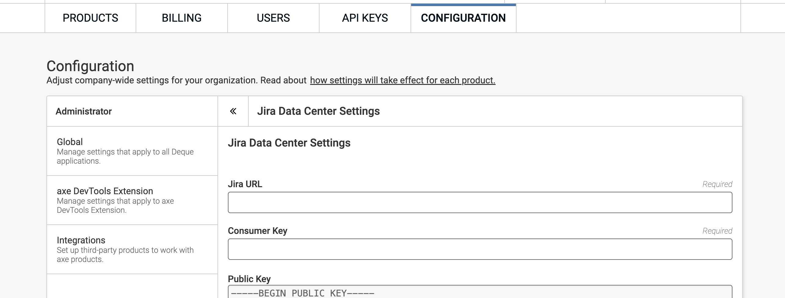 - Back in the Jira Data Center Settings page in the axe Account Portal...