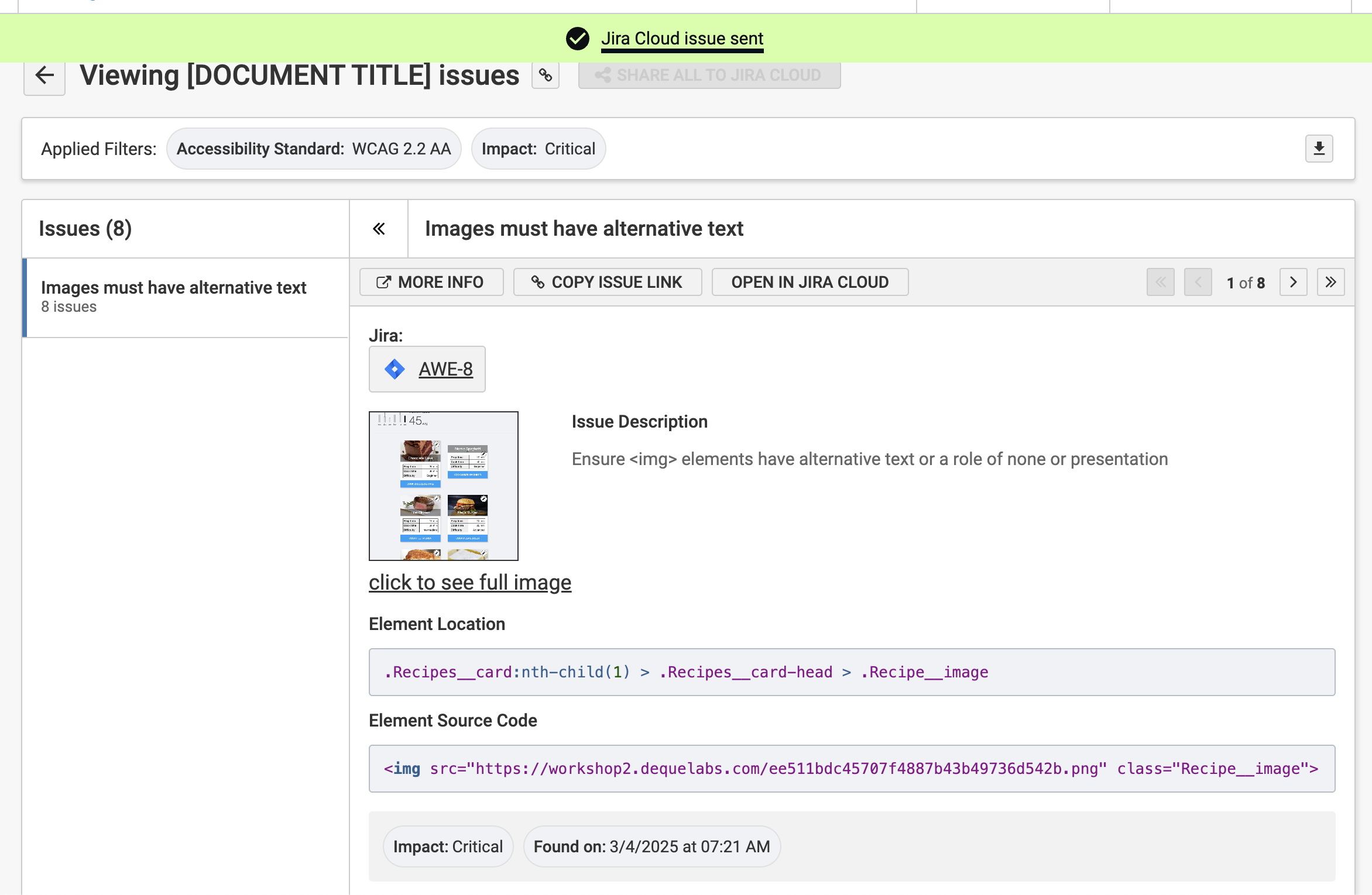 Sending Issues from axe DevTools Extension to Jira