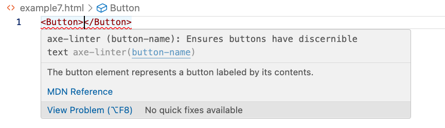 <Button></Button>In your IDE (VS Code is shown) after you've enabled the Cauldron library in your configuration, you will see an error such as the following: