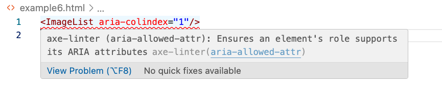 <ImageList aria-colindex="1"/>In your IDE (VS Code is shown), you'll see this error message: