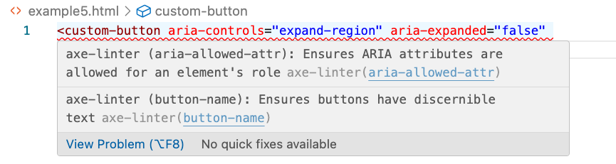 custom-button: buttonYou will receive two errors from your IDE (VS Code is shown):