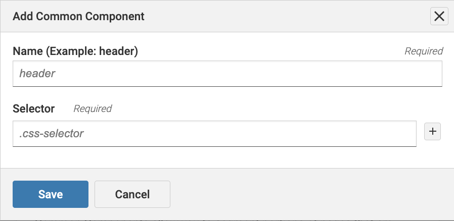 Note: The URI pattern is an indicator field and is used to provide guidance on what type of URIs are used for routine issue scanning. For example, when defining a common component with a template URI such as https://webtestingcourse.dequecloud.com/index.php, entering /index.php in the Template URI pattern field specifies the page used for common components. This does not affect the scanning process of the system.