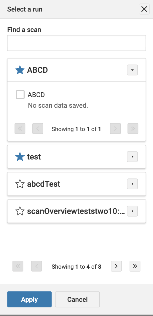 - In the Select Runs modal, select the specific scan run.