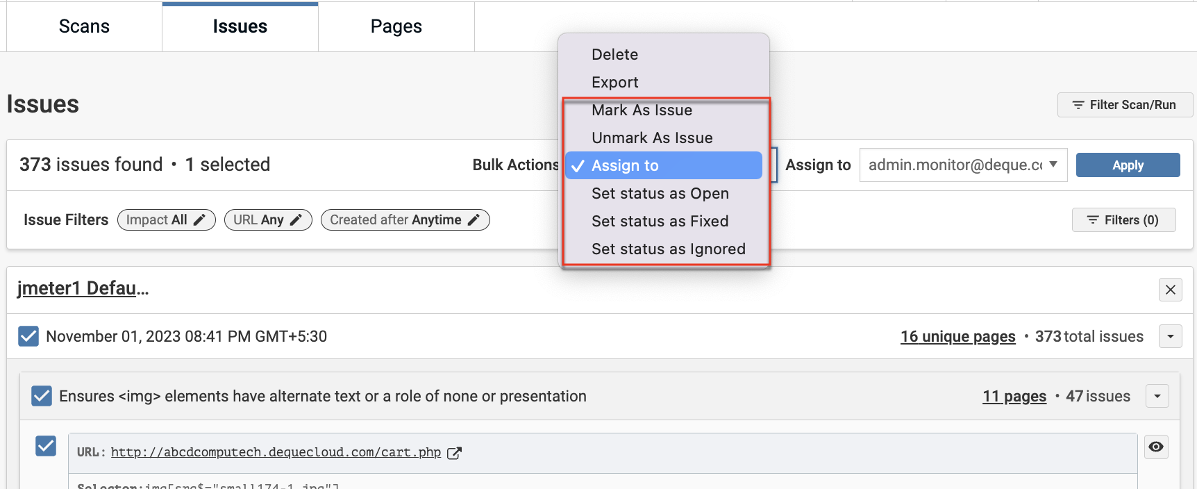 Axe Monitor now includes multiple new bulk actions, allowing users to perform actions on multiple issues at the same time. The following new bulk actions have been added.