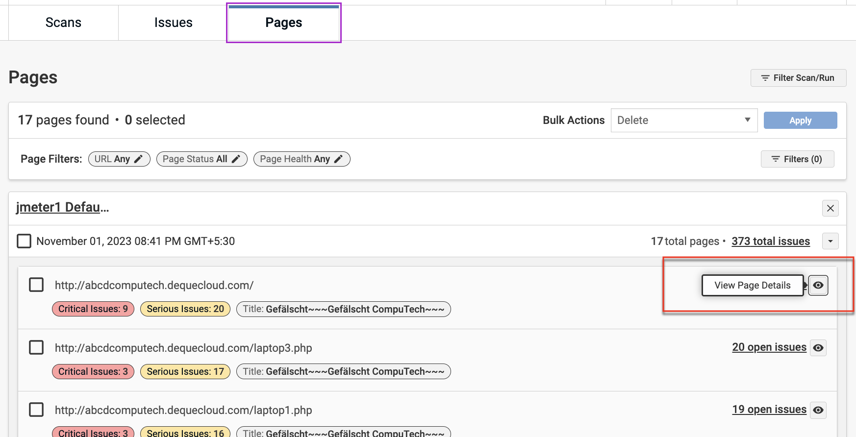 Users can now filter issues on the Issues Page according to the page title for all completed scans.