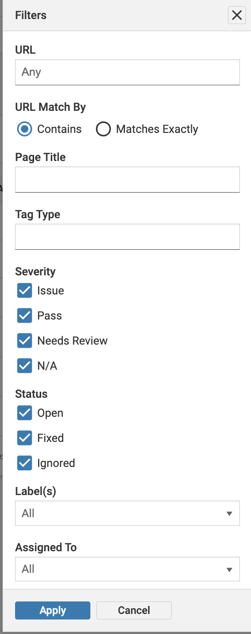 Axe Monitor now provides robust filtering options, enabling users to create actionable, customized reports for their teams. Use filters to focus on just the results that matter to you.