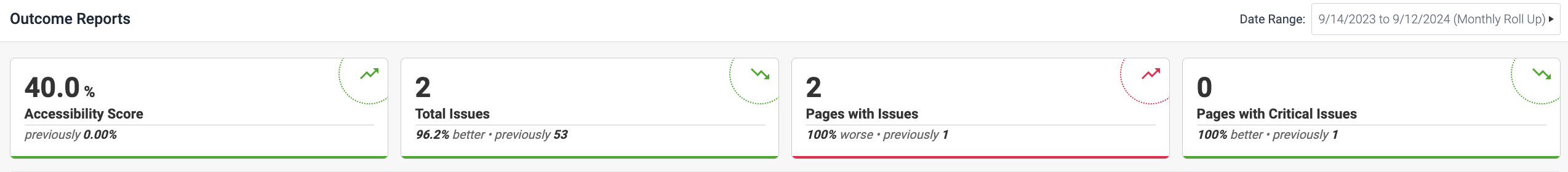 Outcome Reports comprise of two sections: Charts and Key Performance Indicators. There are three subtopics in this section that comprise instructions on how to work with the three different charts in axe Reports that essentially help you navigate around and use the charts in axe Reports most effectively.