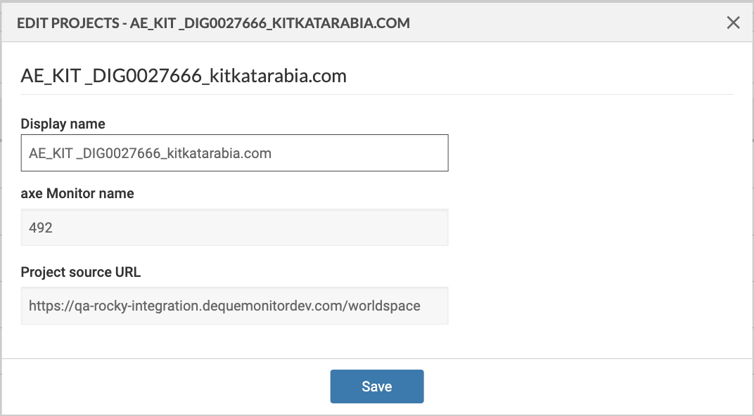 Edit Projects: Click the Edit Projects icon to open the Edit Projects modal. You can update the project's display name and save your changes.