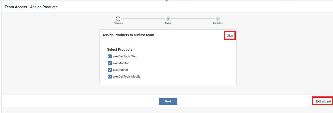 By default, all products are enabled. If you do not want to make any changes to the existing product selection, select the Skip.