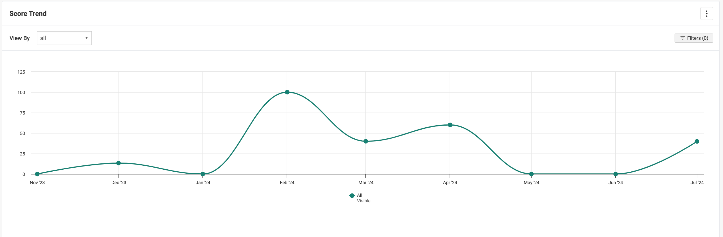 This chart represents a time-series view for accessibility score for all properties included in the level of hierarchy selected.